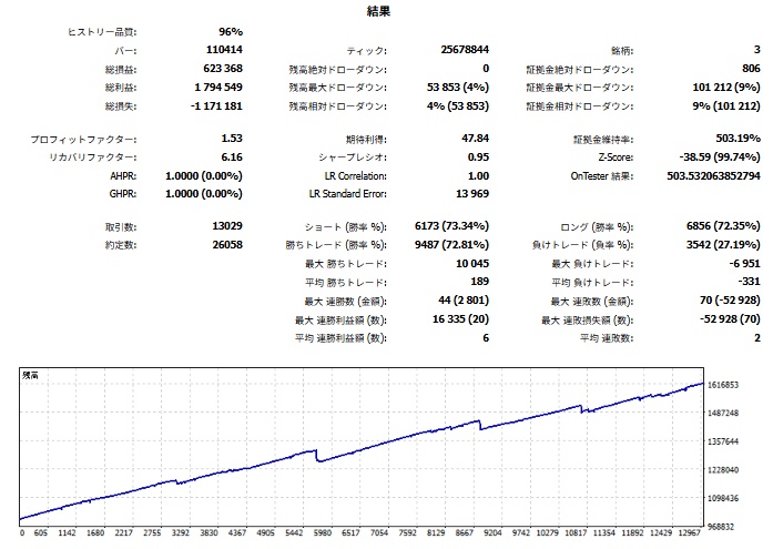 - クローズ条件:利確幅(pips)での決済。シグナル損切りでの決済。