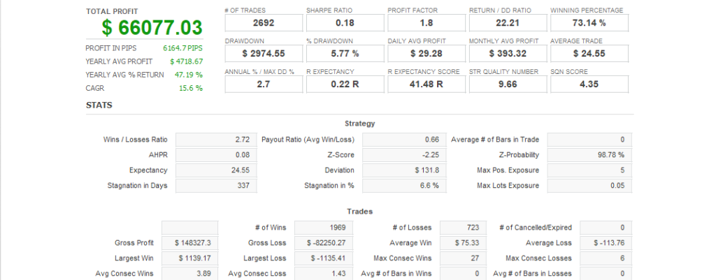 | 推奨証拠金 | $100 USD、月利:3.5% ※この情報は「0.01ロットで運用した場合の参考値」です。実際のロットサイズに応じて変動します。 |