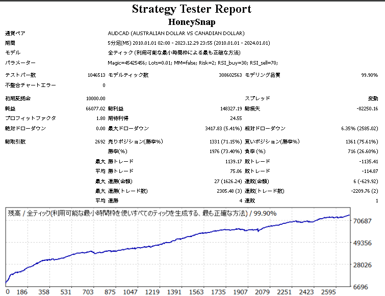 HoneySnapのバックテスト