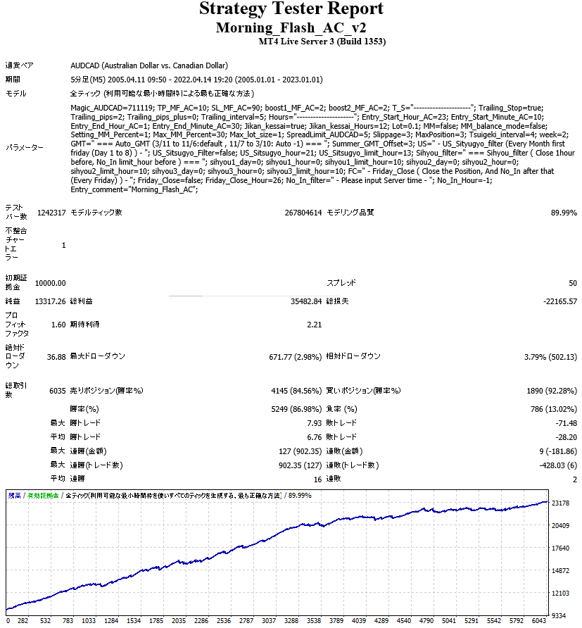 「2005年~いま現在まで」のバックテストを実施してみました。