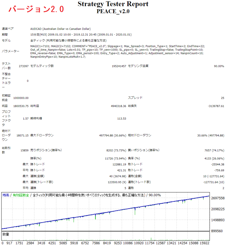 決済ロジックについてはバージョン1と同様になっておりますが、ナンピン間隔は独自の