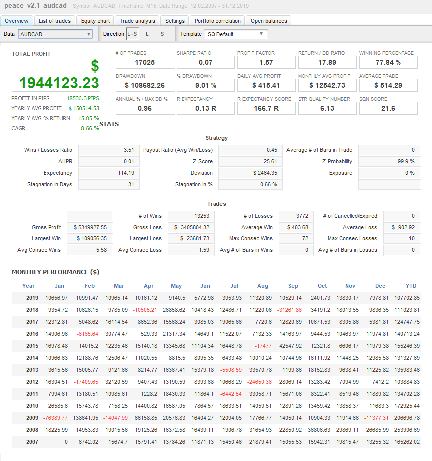 PEACEのロジックはとてもシンプルですので、バックテストとフォワードテストの乖離が比較的少なくパラメータの最適化がしやすくなっております。