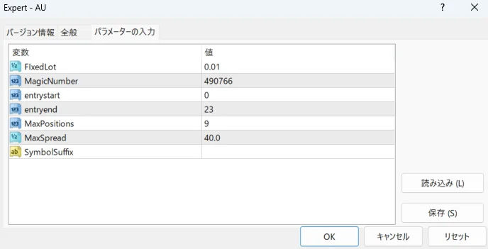 ご利用のブローカーによっては、通貨ペア名に「サフィックス(例:AUDJPY.m、AUDJPYpro など)」が付与されている場合があります。