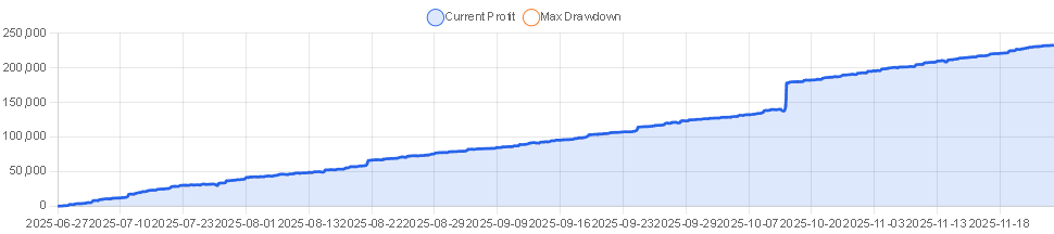 | 推奨証拠金 | $5,000 USD、月利:10% ※この情報は「0.01ロットで運用した場合の参考値」です。実際のロットサイズに応じて変動します。 |