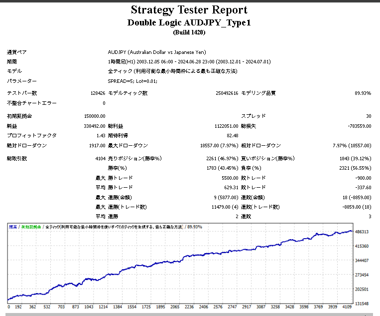 Double Logic AUDJPY_Type1のバックテスト