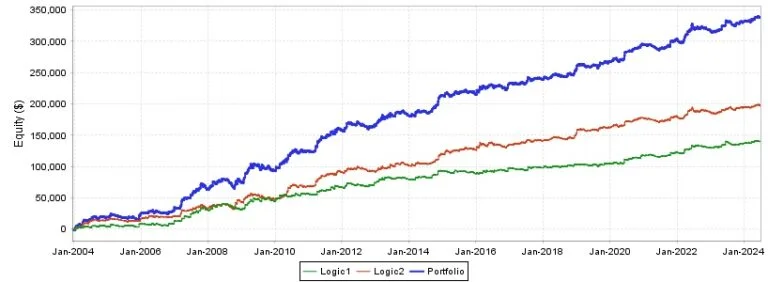 独自基準をクリアした20以上のEAから最良の組み合わせとなる2つのロジックを採用しました。