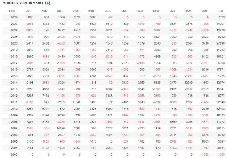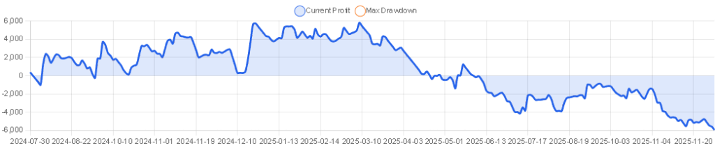 損小利大のため勝率は40%程度、多くの月で黒字になるタイプではありません。