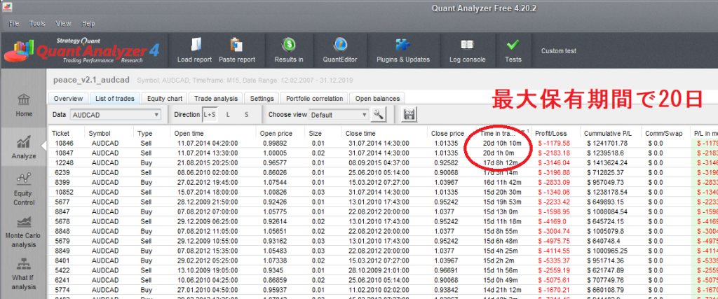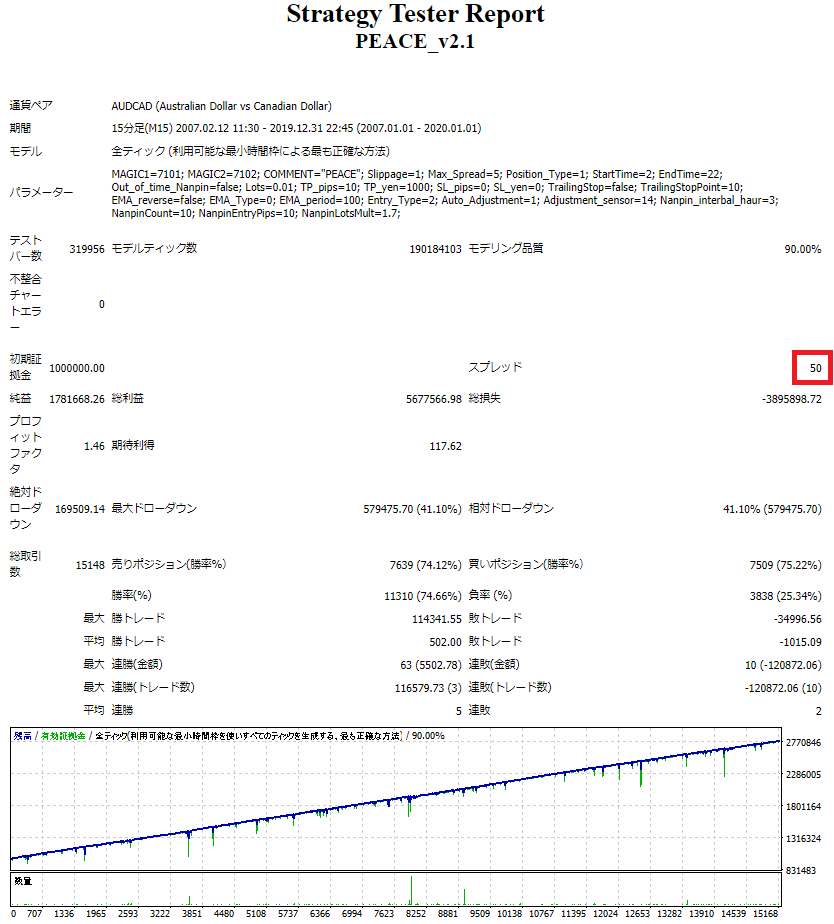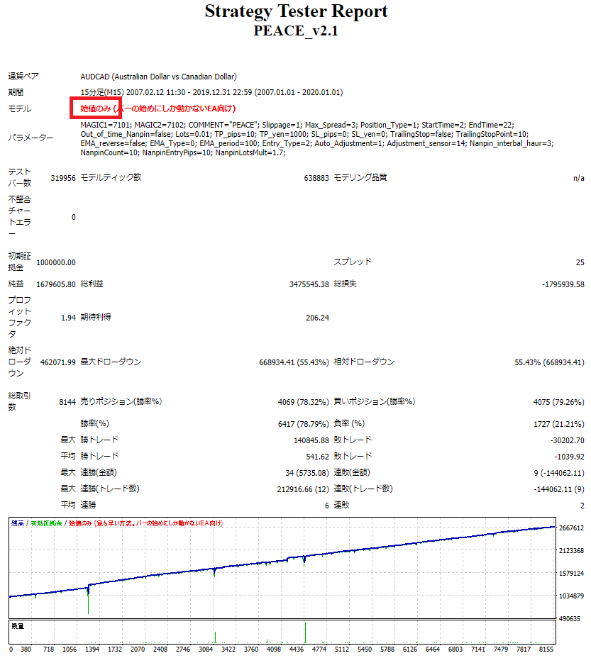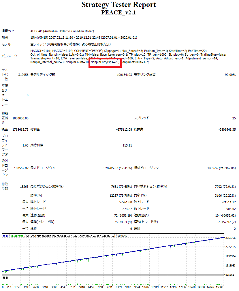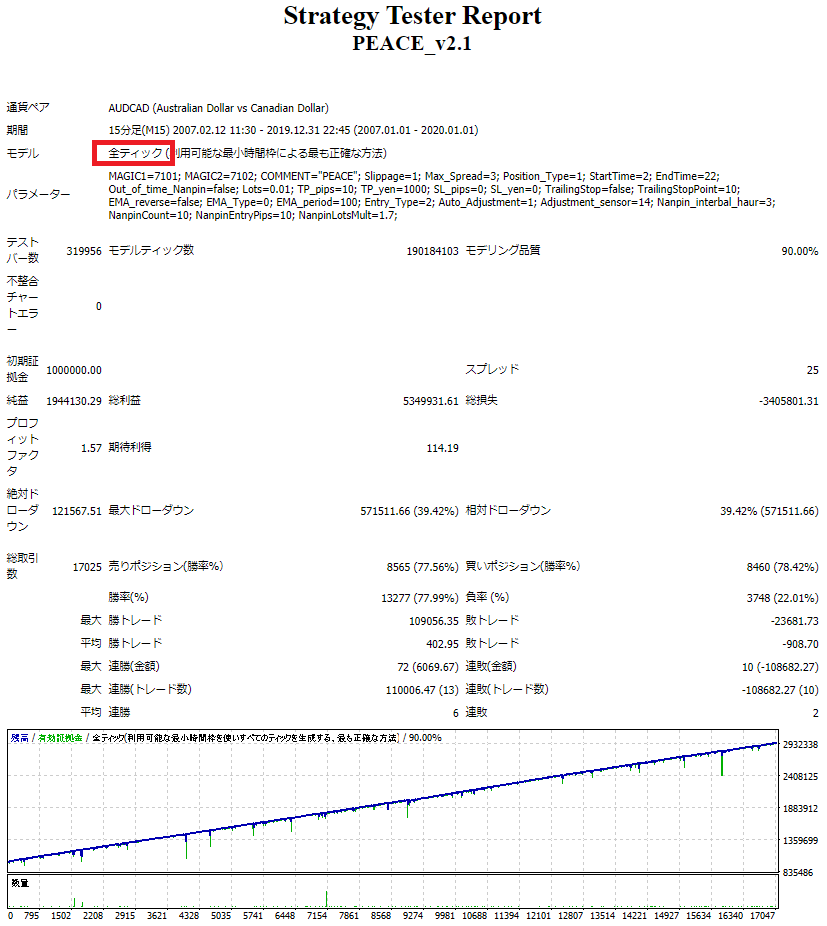 PEACEのロジックはとてもシンプルですので、バックテストとフォワードテストの乖離が比較的少なくパラメータの最適化がしやすくなっております。