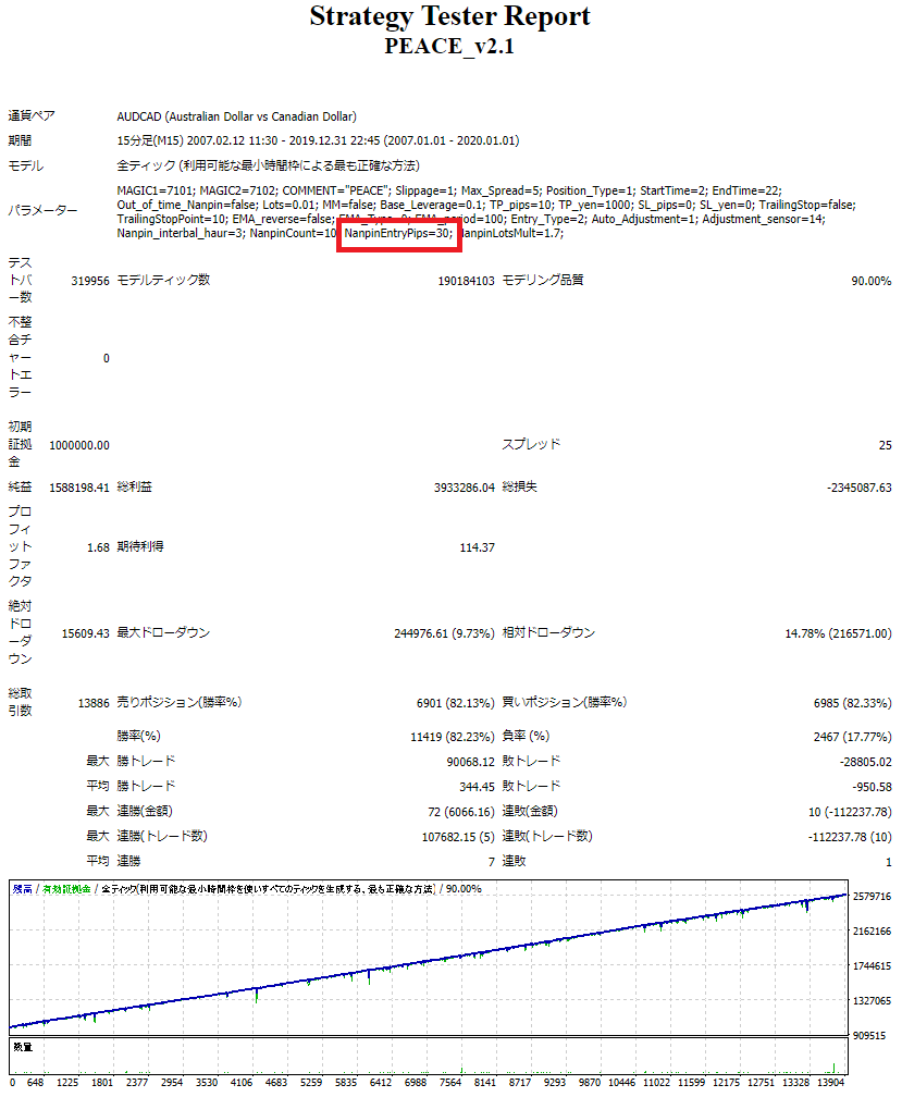 初期設定(推奨通貨ペアAUDCAD/期間2009.1.1-2020.1.1の過去チャートを用いた検証による最適化設定)を例にそのロジックをご紹介致します。