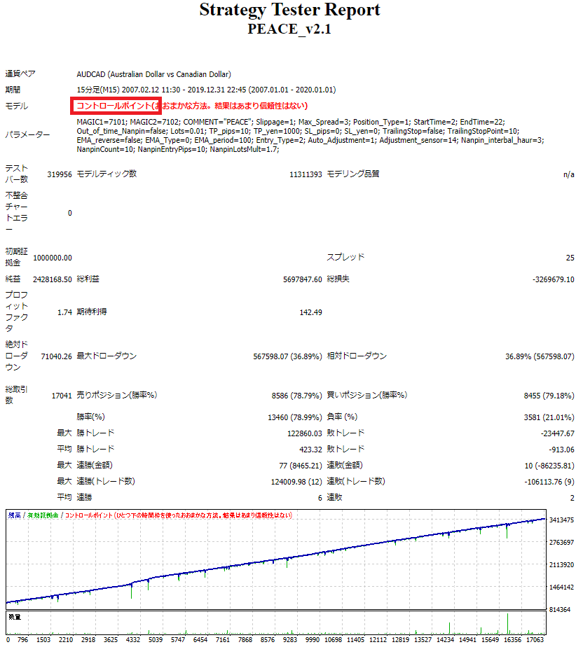 始値によるバックテストは信頼性が低いため検証には適さず、最低でもコントロールポイントでの検証が必要。