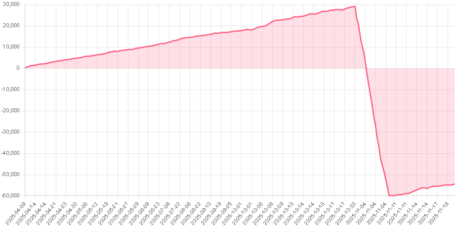 戻らないDD地獄とは無縁で、“浅く・速く・小さく利確”の連続で資産が積み上がる構造がよく分かります。