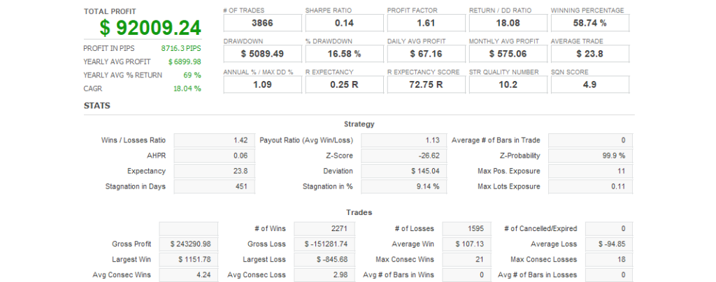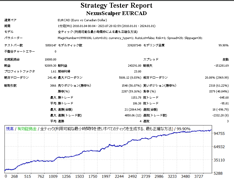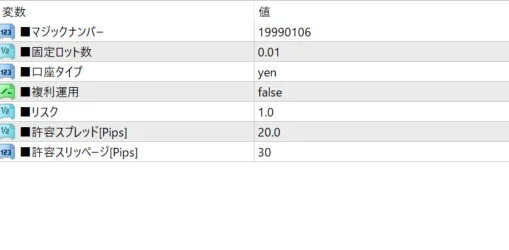 | 推奨証拠金 | $100 USD、月利:5% ※この情報は「0.01ロットで運用した場合の参考値」です。実際のロットサイズに応じて変動します。 |