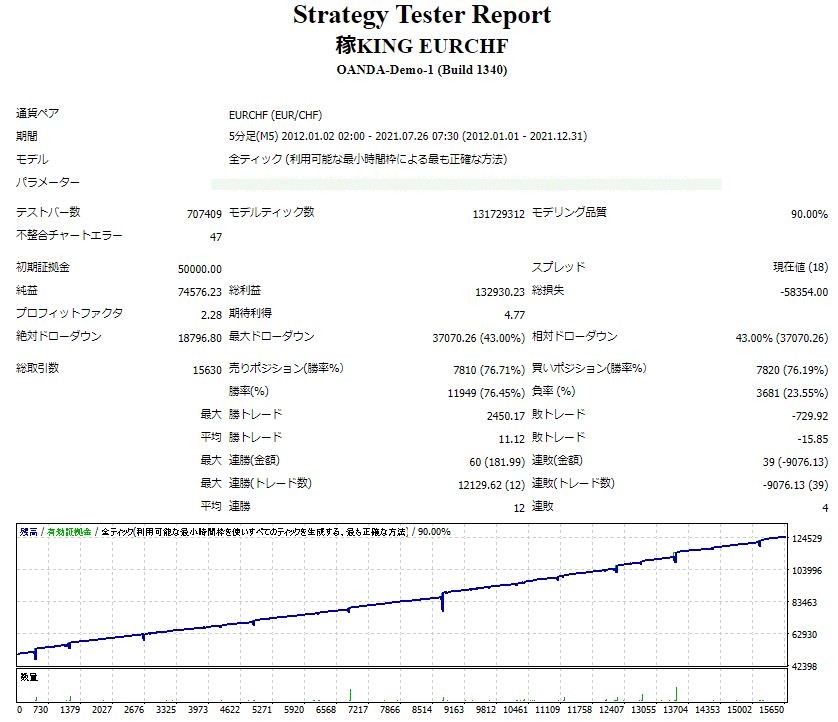 稼KING EURCHF は長期的に大きな利益を上げる為に特化したEAになっております。