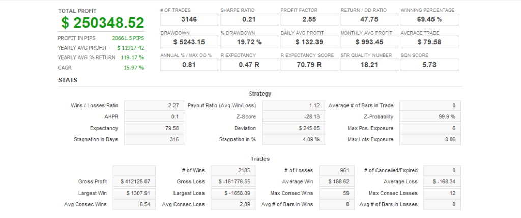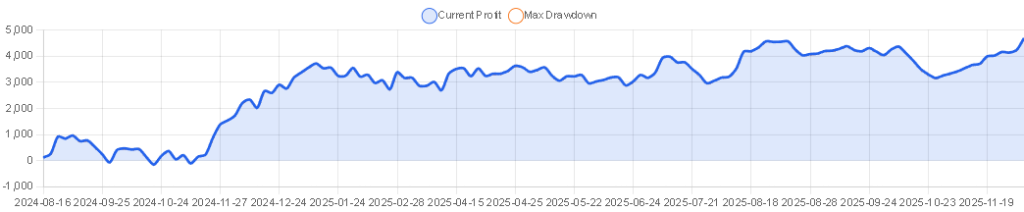 推奨証拠金$100 USD、月利:10% ※この情報は「0.01ロットで運用した場合の参考値」です。実際のロットサイズに応じて変動します。