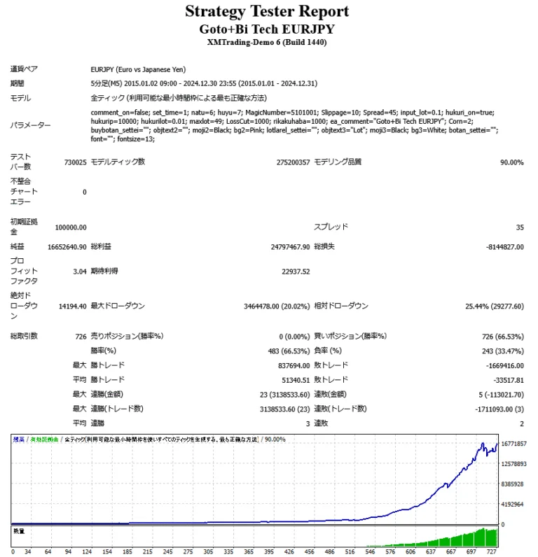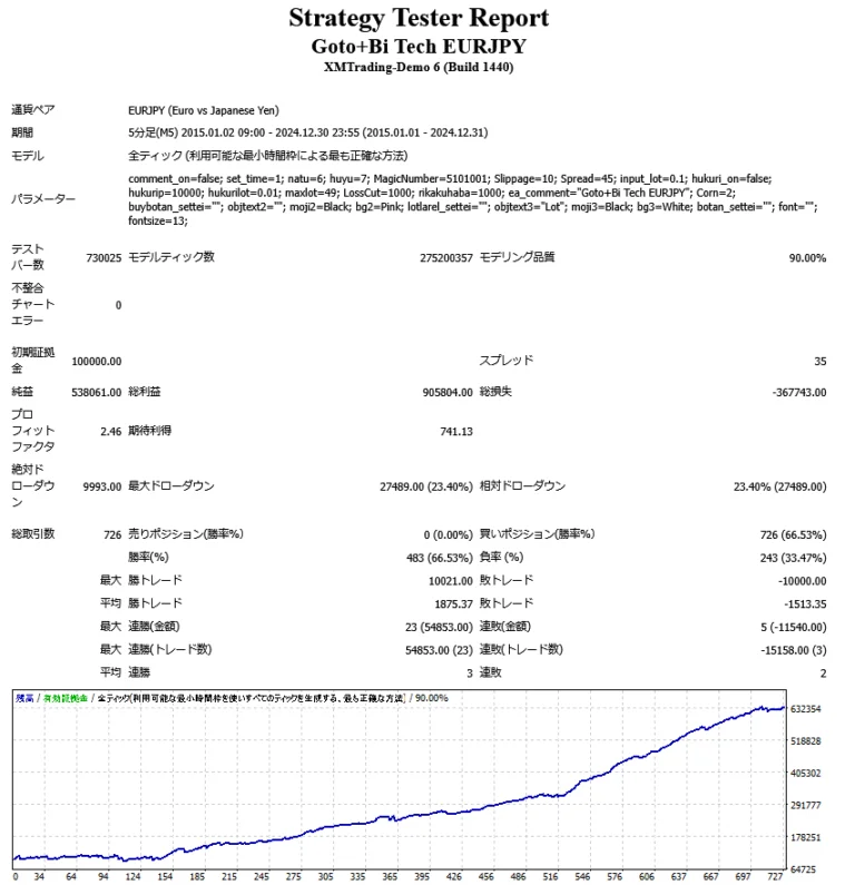 Goto+Bi Tech EURJPYのバックテスト