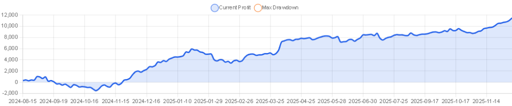 | 推奨証拠金 | $100 USD、月利:5% ※この情報は「0.01ロットで運用した場合の参考値」です。実際のロットサイズに応じて変動します。 |