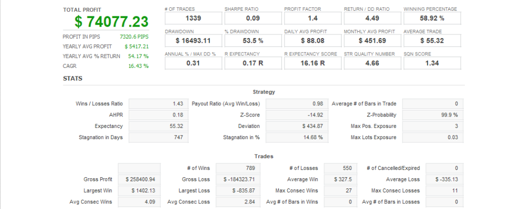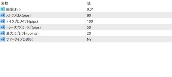 - クローズ条件:ポジションは指定された時刻、またはトレーリングストップの条件に達した場合にクローズされます。トレーリングストップ機能により、利益を追求しつつリスクを制御します。