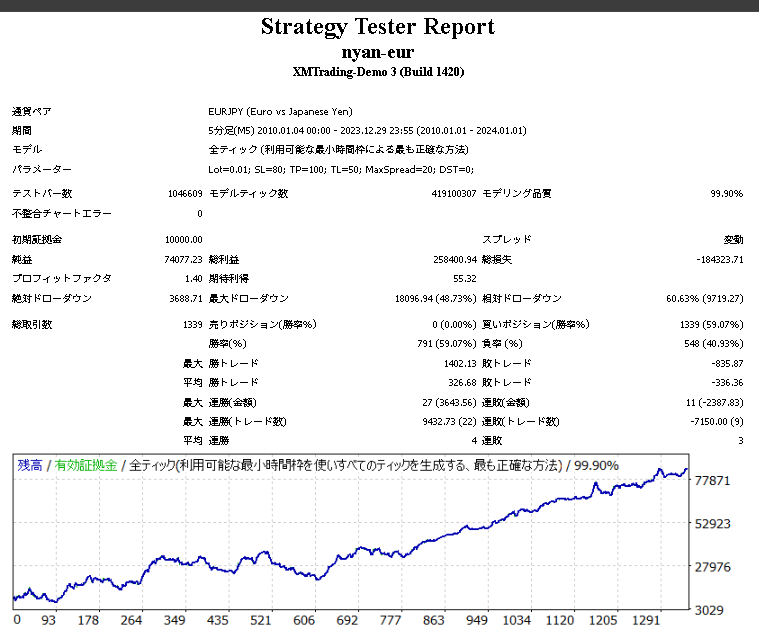 にゃんユーロのバックテスト