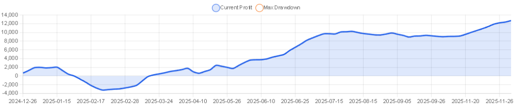 | 推奨証拠金 | $150 USD、月利:13% ※この情報は「0.01ロットで運用した場合の参考値」です。実際のロットサイズに応じて変動します。 |