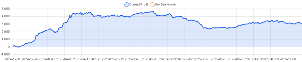 推奨証拠金$50 USD,月利:10% ※この情報は「0.01ロットで運用した場合の参考値」です。実際のロットサイズに応じて変動します。
