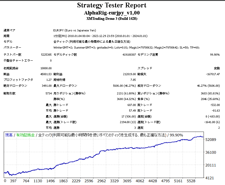 EURJPY(ユーロ円)×スキャルピング×1分足「AlphaRig-eurjpy」 FX自動売買ツールEA