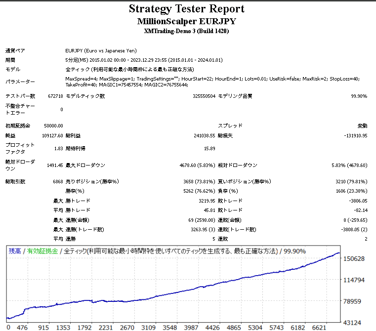 MillionScalperの特長は、リスク管理機能の充実度にあります。スプレッドやスリッページを自動調整し、不利な取引条件を回避。さらに、損切りや利確の柔軟な設定も可能です。