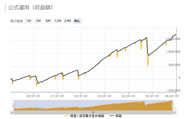 グラフを御覧頂いても解る様に右肩上がりで利益を積み上げていきます。