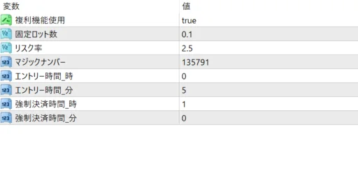 ※デフォルトで「複利機能」を搭載しておりますが、 慎重運用したい場合は単利で運用可能です。 ※業者ごとでトレード開始時間が違う為、 使用する業者のトレード開始時間を確認し設定してください。 ※ストップレベルが0の業者推奨。 窓埋めNG業者以外を使用してください。