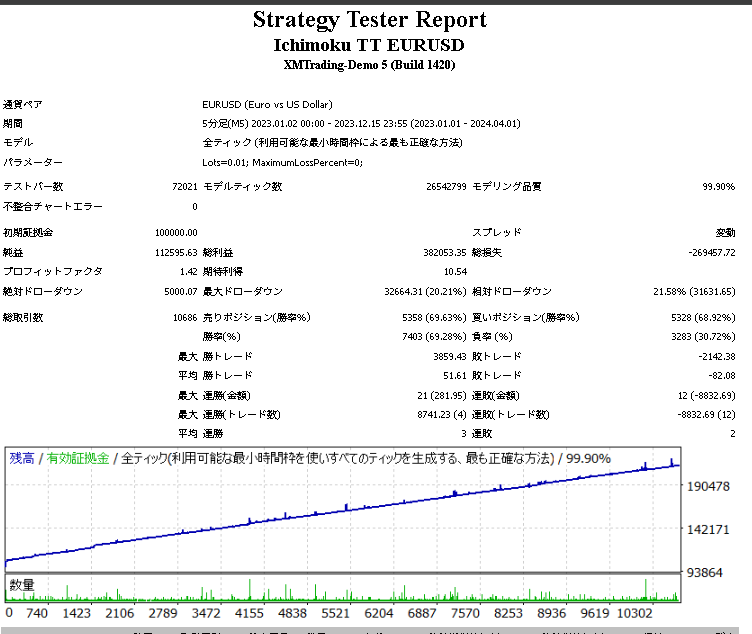 Ichimoku TT EURUSDのバックテスト