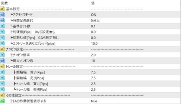 - ナンピン倍率設定:ナンピンの倍率を任意に設定することが可能です。