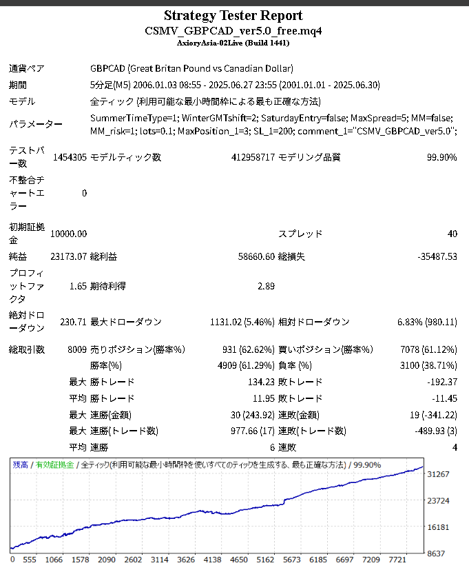 CSMV_GBPCADのバックテスト