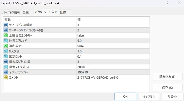 CSMV_GBPCADのパラメーター
