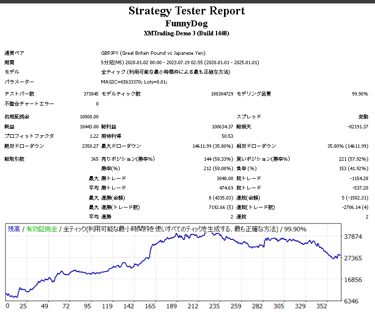 | 推奨証拠金 | $100 USD、月利:5% ※この情報は「0.01ロットで運用した場合の参考値」です。実際のロットサイズに応じて変動します。 |