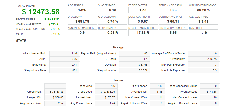 リスクリワード比は1を少し超える程度、勝率は60%を少し超える程度でバランス型のEAになっています。