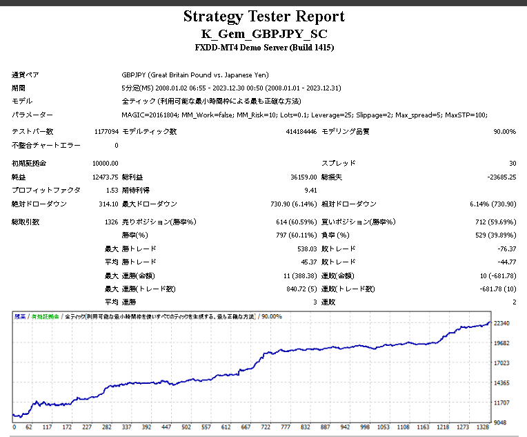 GBPJPY(ポンド円)×デイトレード×5分足「K_Gem_GBPJPY_SC」 FX自動売買ツールEA