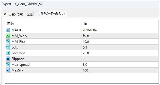 K_Gem_GBPJPY_SCは、ポンド円5分足専用のEAになります。