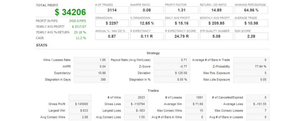 | 推奨証拠金 | $50 USD、月利:10% ※この情報は「0.01ロットで運用した場合の参考値」です。実際のロットサイズに応じて変動します。 |