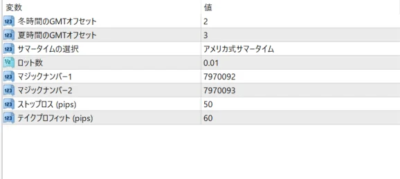 AlphaRig-gbpjpyのパラメーター