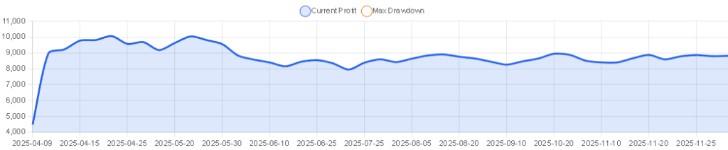| 推奨証拠金 | $100 USD、月利:7% ※この情報は「0.01ロットで運用した場合の参考値」です。実際のロットサイズに応じて変動します。 |