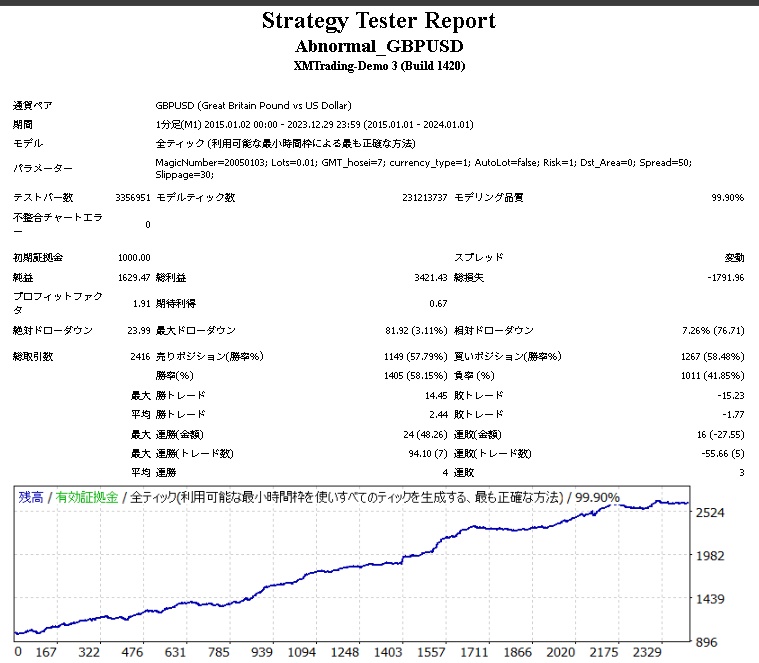 Abnormal-03 GBPUSDのバックテスト