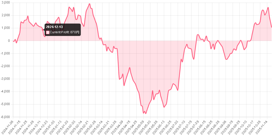 | 推奨証拠金 | $200 USD、月利:10% ※この情報は「0.01ロットで運用した場合の参考値」です。実際のロットサイズに応じて変動します。 |
