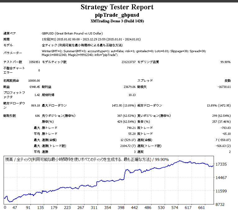 - 長期的に使える安定したロジック: 市場の変動に耐え、数年にわたって使い続けられる取引ロジックを搭載。安定性が大事なあなたにぴったりです。
