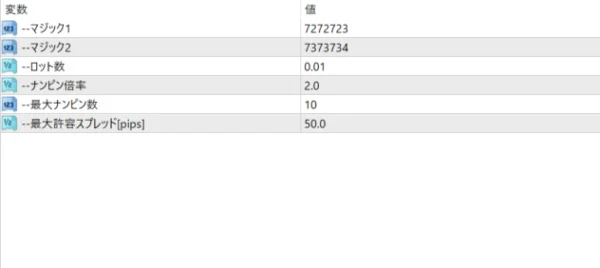 - 戦略: ナンピン+マーチンゲールを組み合わせたハイブリッドシステム