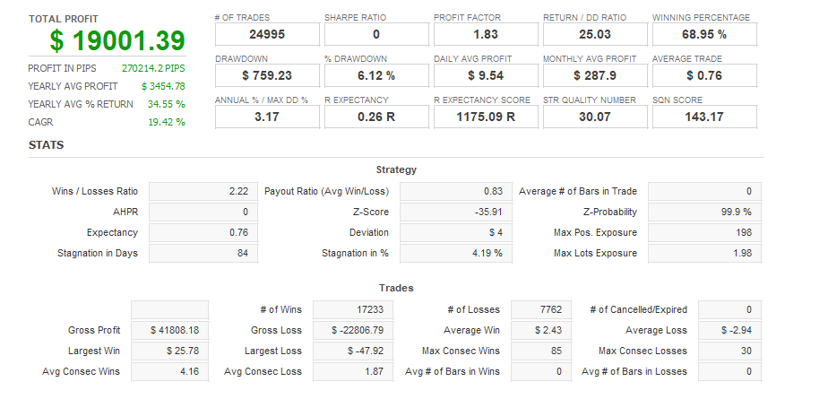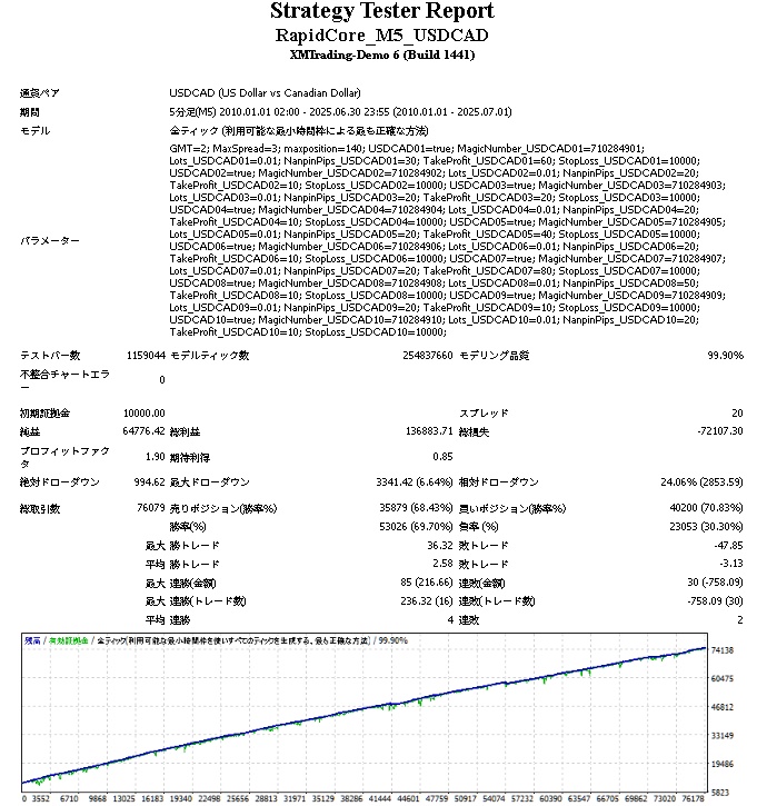 本EAは、2010年~2025年の約15年分の過去データをもとに、トレード数・勝率・損益効率のすべてにおいて高水準な成績を記録しています。