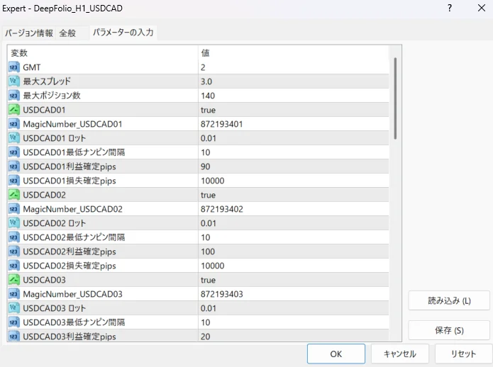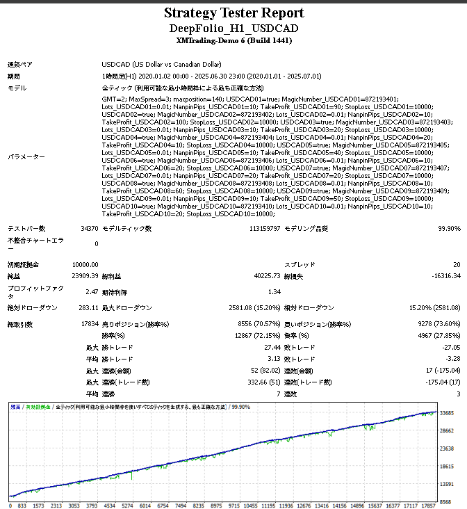 USDCAD(米ドル/カナダドル)×スイング×1時間足 DeepFolio_H1_USDCAD FX自動売買ツールEA