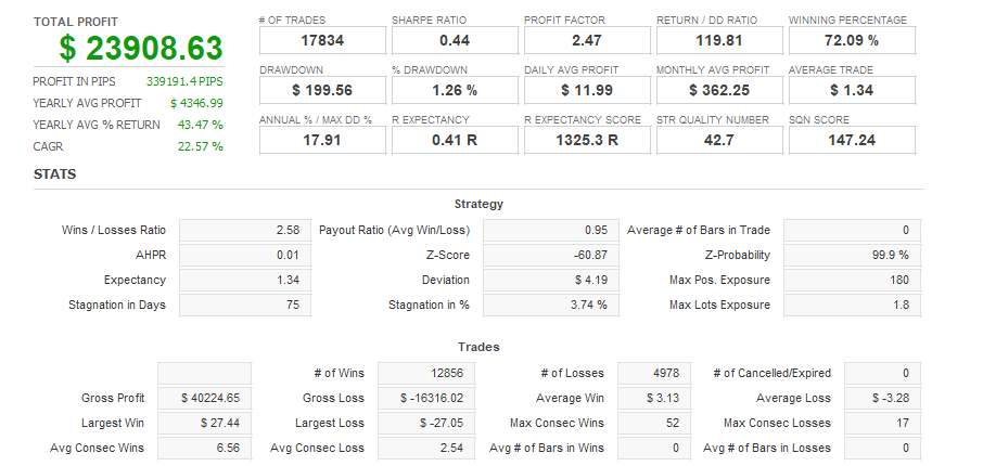 • エントリー条件:複数の取引ロジックを備え、順張り、もしくは逆張りでエントリーし、逆行する場合にはナンピンします。