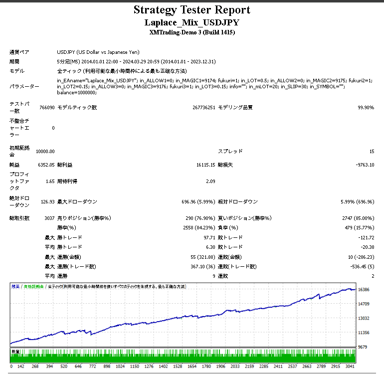 Laplace Mix USDJPYのバックテスト
