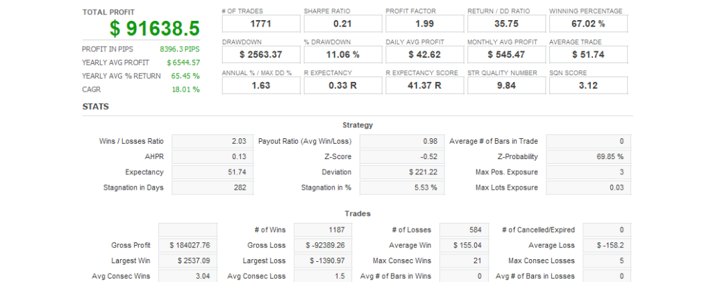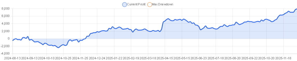 | 推奨証拠金 | $100 USD、月利:5% ※この情報は「0.01ロットで運用した場合の参考値」です。実際のロットサイズに応じて変動します。 |