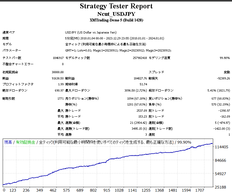 - エントリー条件:ニューヨーク市場の開場前にロングポジションを保有する戦略を採用しています。具体的には、市場の動向やエントリー条件に基づき、ニューヨーク市場の開場前にポジションを持つように設定されています。