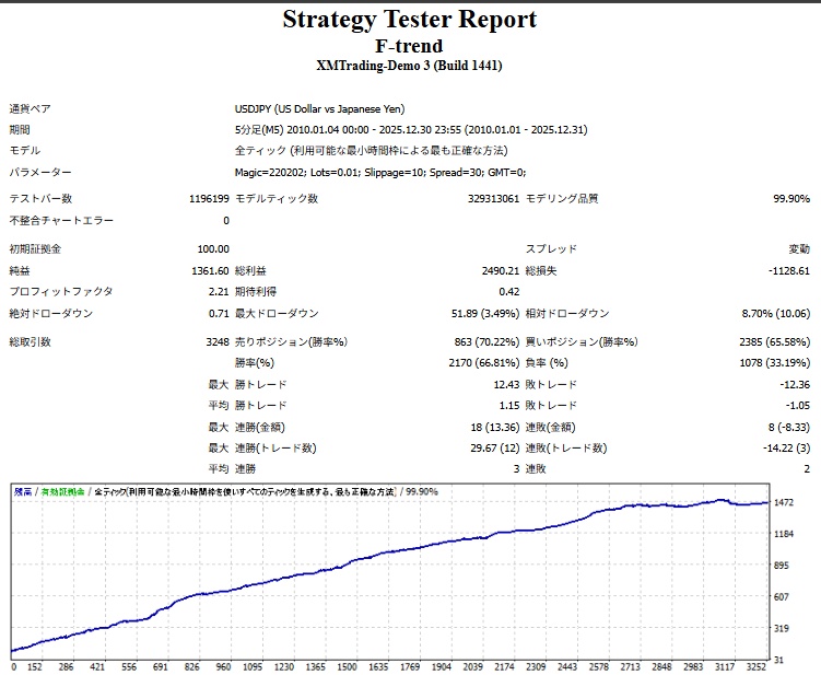 USDJPY(ドル円)×デイトレード×5分足 F-Trend FX自動売買ツールEA